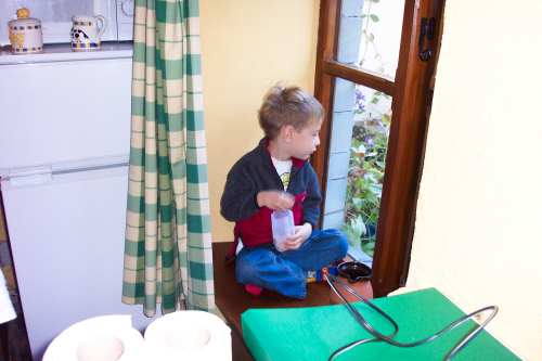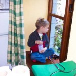 Having breakfast at our little cottage